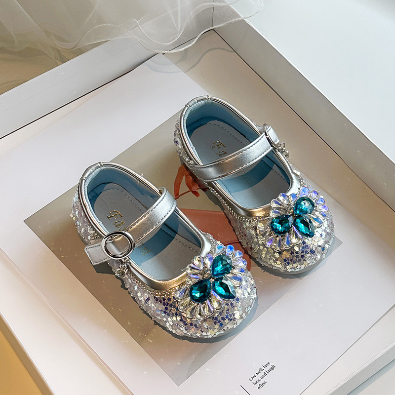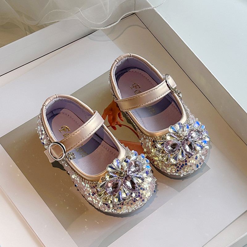 女童闪亮水钻公主鞋2025春秋新款儿童皮鞋女孩水晶鞋宝宝演出单鞋