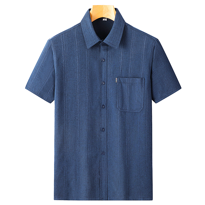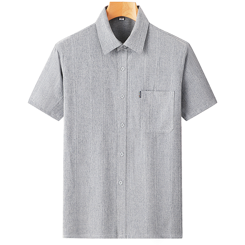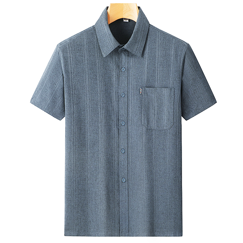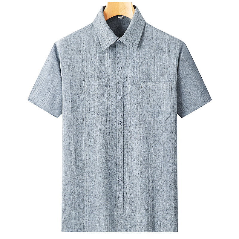 爸爸夏装短袖衬衫中年男装夏季薄款冰丝亚麻衬衣中老年人男士上衣