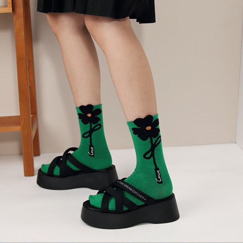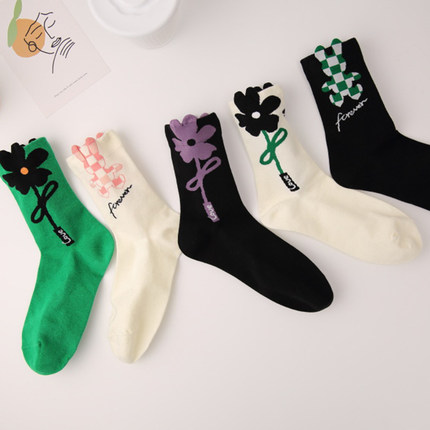 立体花朵袜子女春秋ins潮纯棉中筒袜卡通可爱风秋冬外穿学生长袜