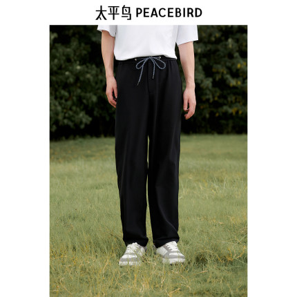太平鸟男装 黑色男士长裤秋季针织运动休闲裤抽绳卫裤男