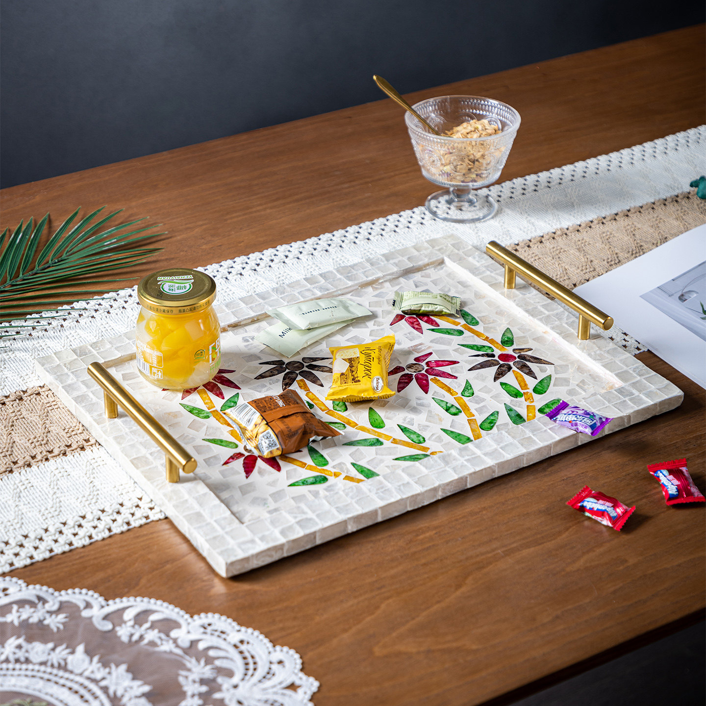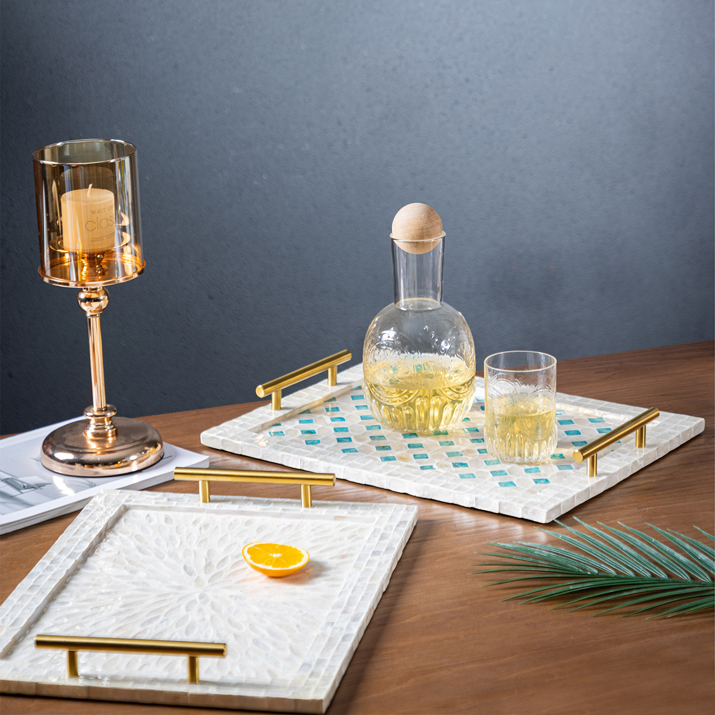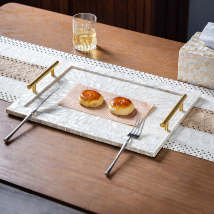 轻奢北欧风长方形贝壳餐果盘家用客厅茶几置物盘首饰收纳装饰托盘