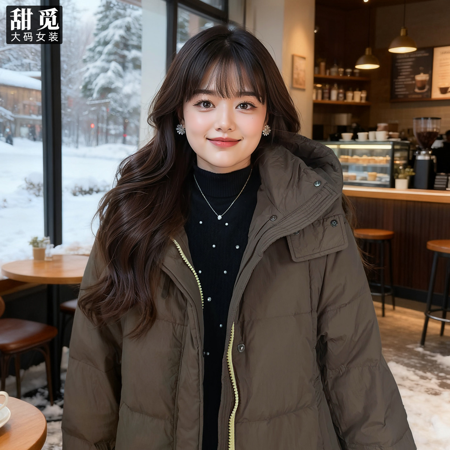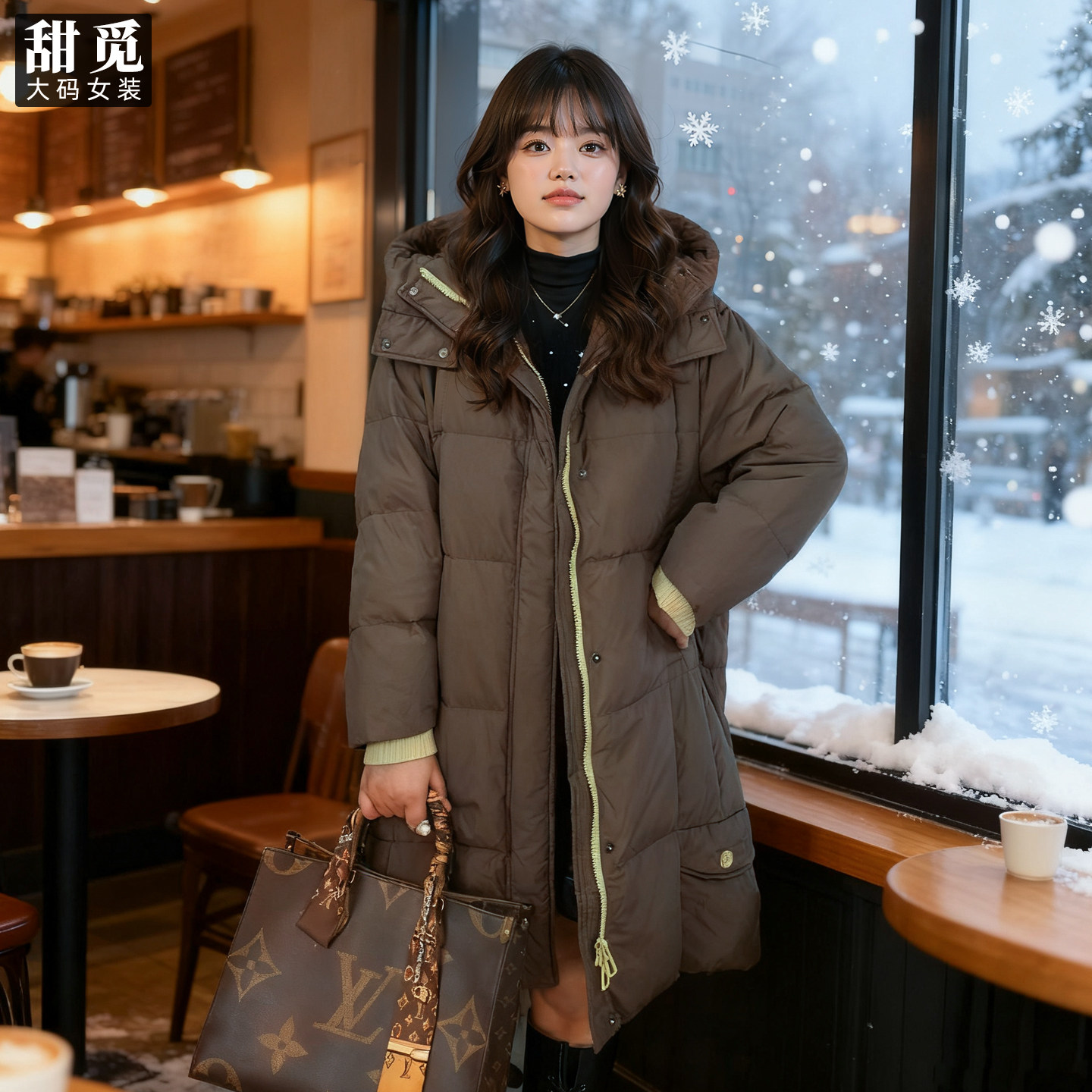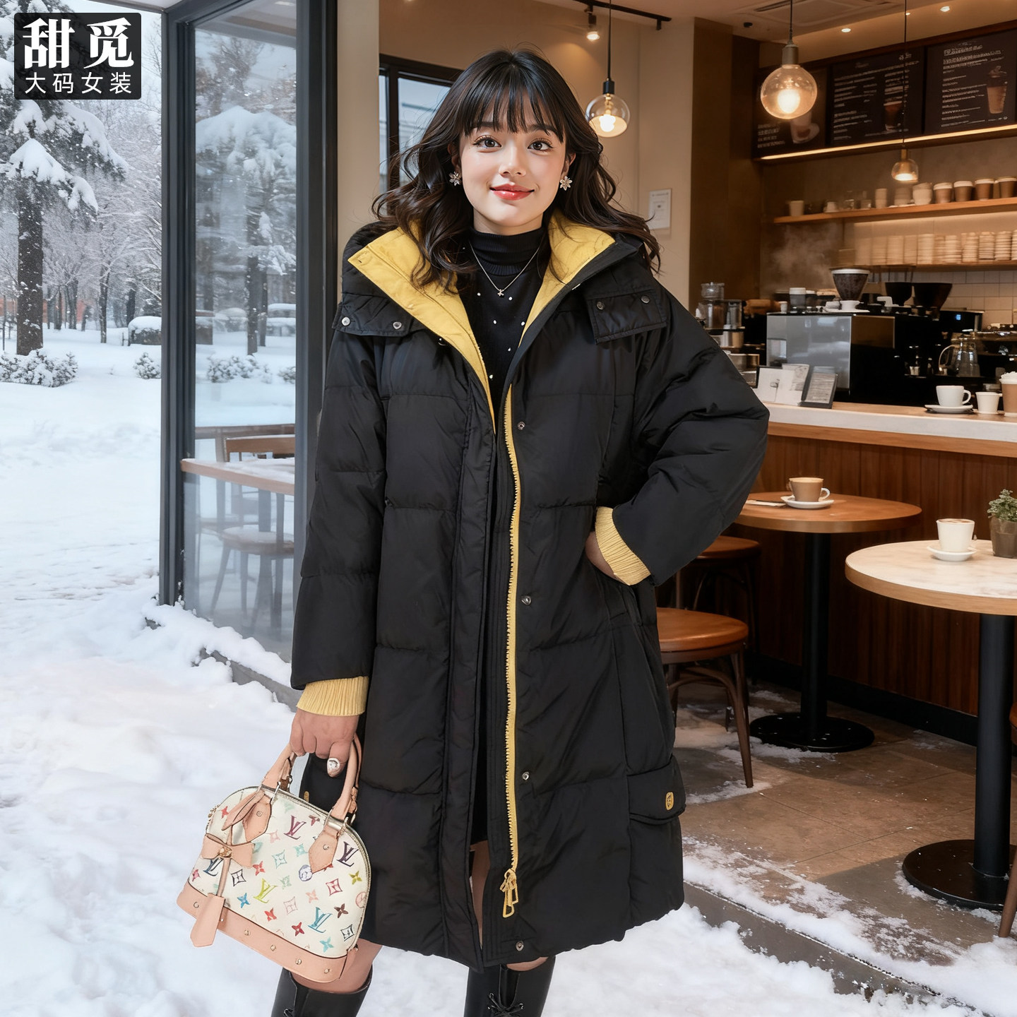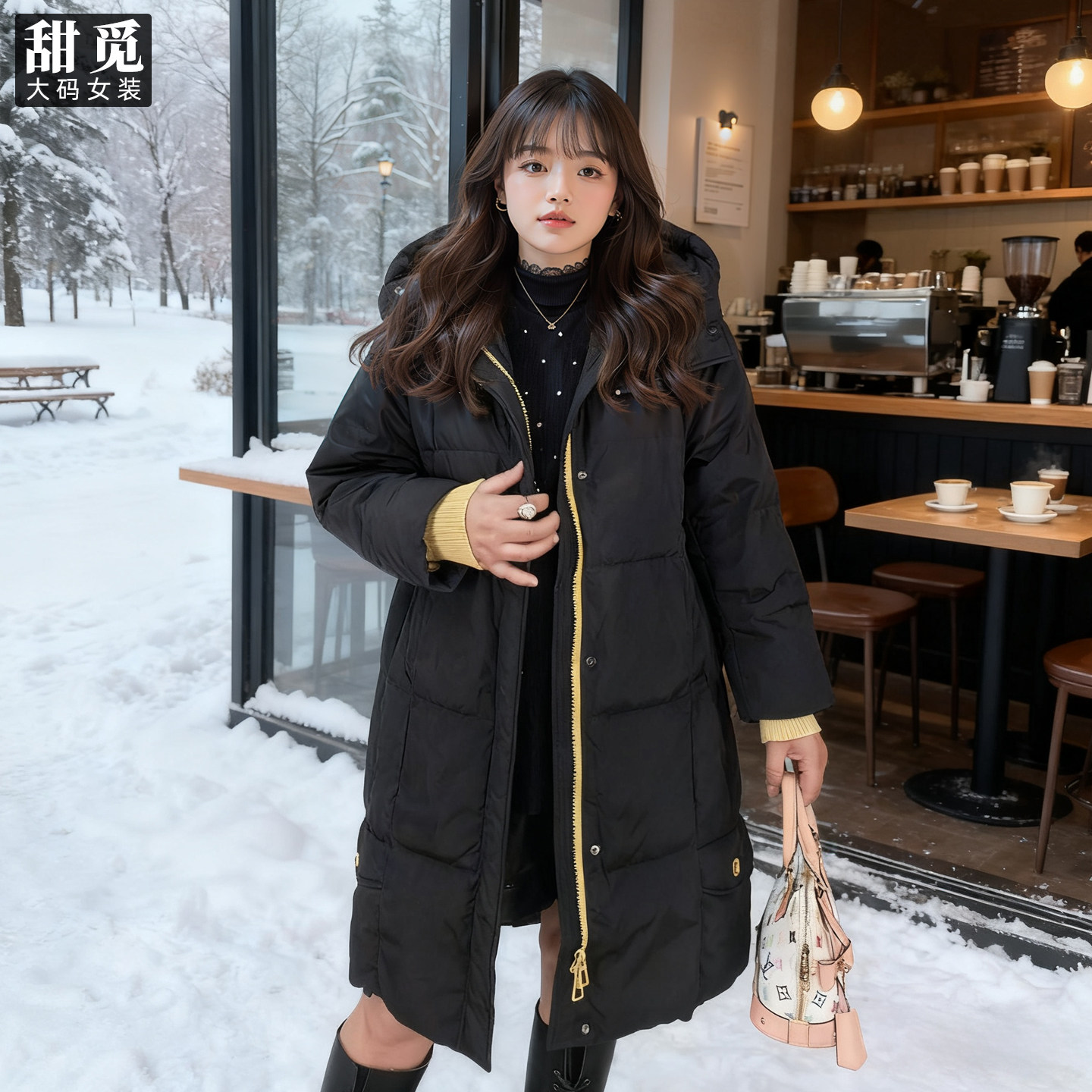 甜觅特大码女装冬装胖mm300斤加肥加大时尚中长款拼色连帽羽绒服