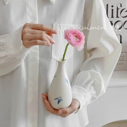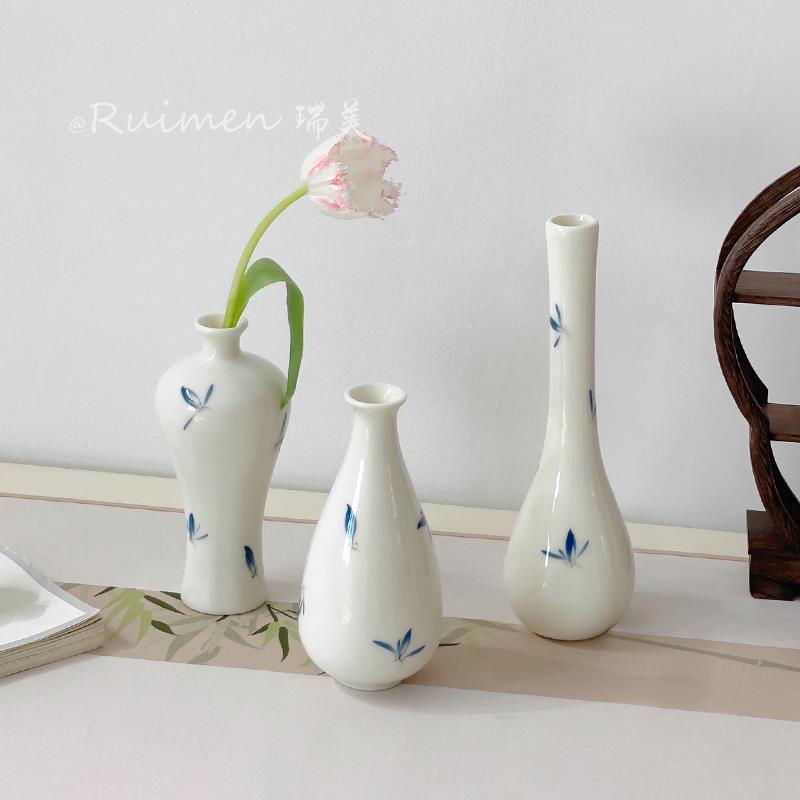 禅意新中式手绘蝴蝶兰花小花瓶陶瓷水养插花客厅桌面花器装饰摆件