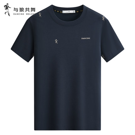 【散点刺绣】与狼共舞圆领短袖T恤男2025夏季新款抗菌凉感透气短t