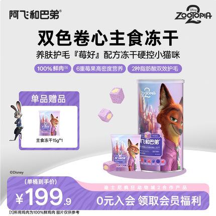 阿飞和巴弟全价鲜肉卷心主食猫冻干鸡胸肉迪士尼疯狂动物城合作款