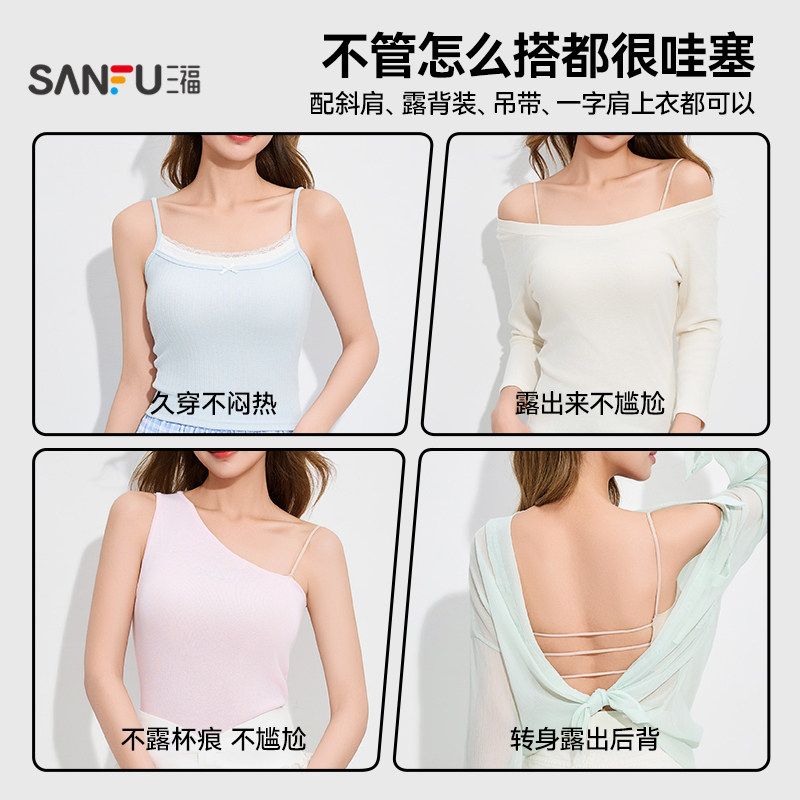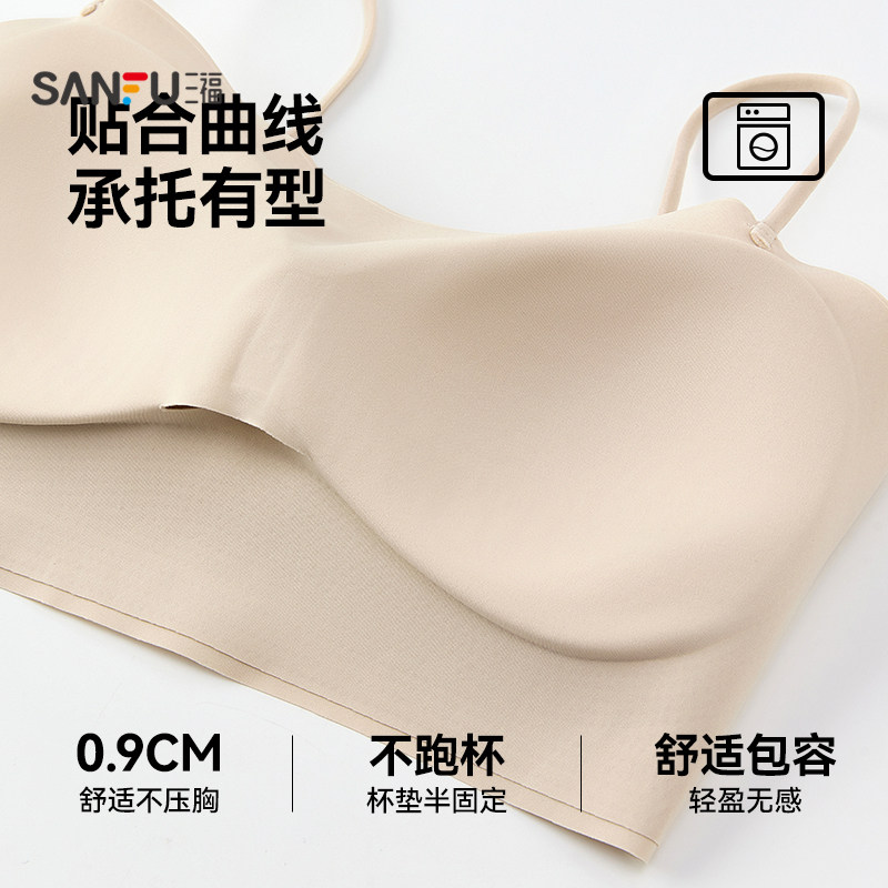 三福女中薄杯无钢圈聚拢文胸美背抹胸凉感抗菌吊带背心内衣495023