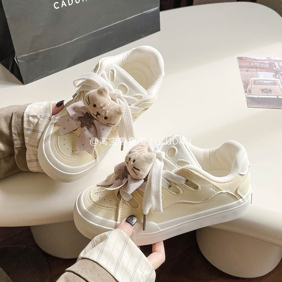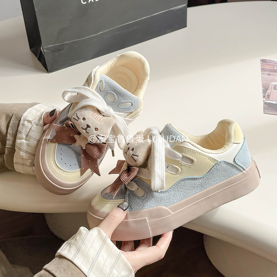 鲁鲁蛋 厚底休闲板鞋女款2025新款厚底小白鞋ins潮百搭鞋子面包鞋