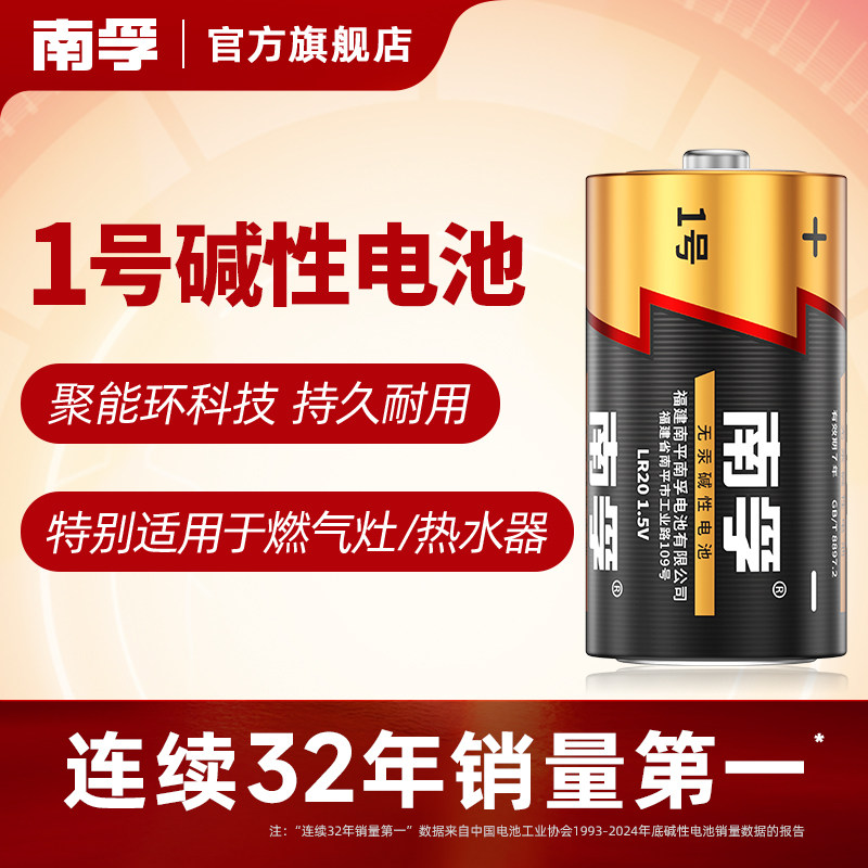 南孚电池 1号碱性LR20大号一号热水器燃煤气灶费雪摇椅聚能环电池