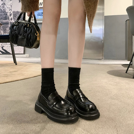 小码女鞋313233码乐福鞋小皮鞋一脚蹬单鞋增高百搭jk裙子裤子34
