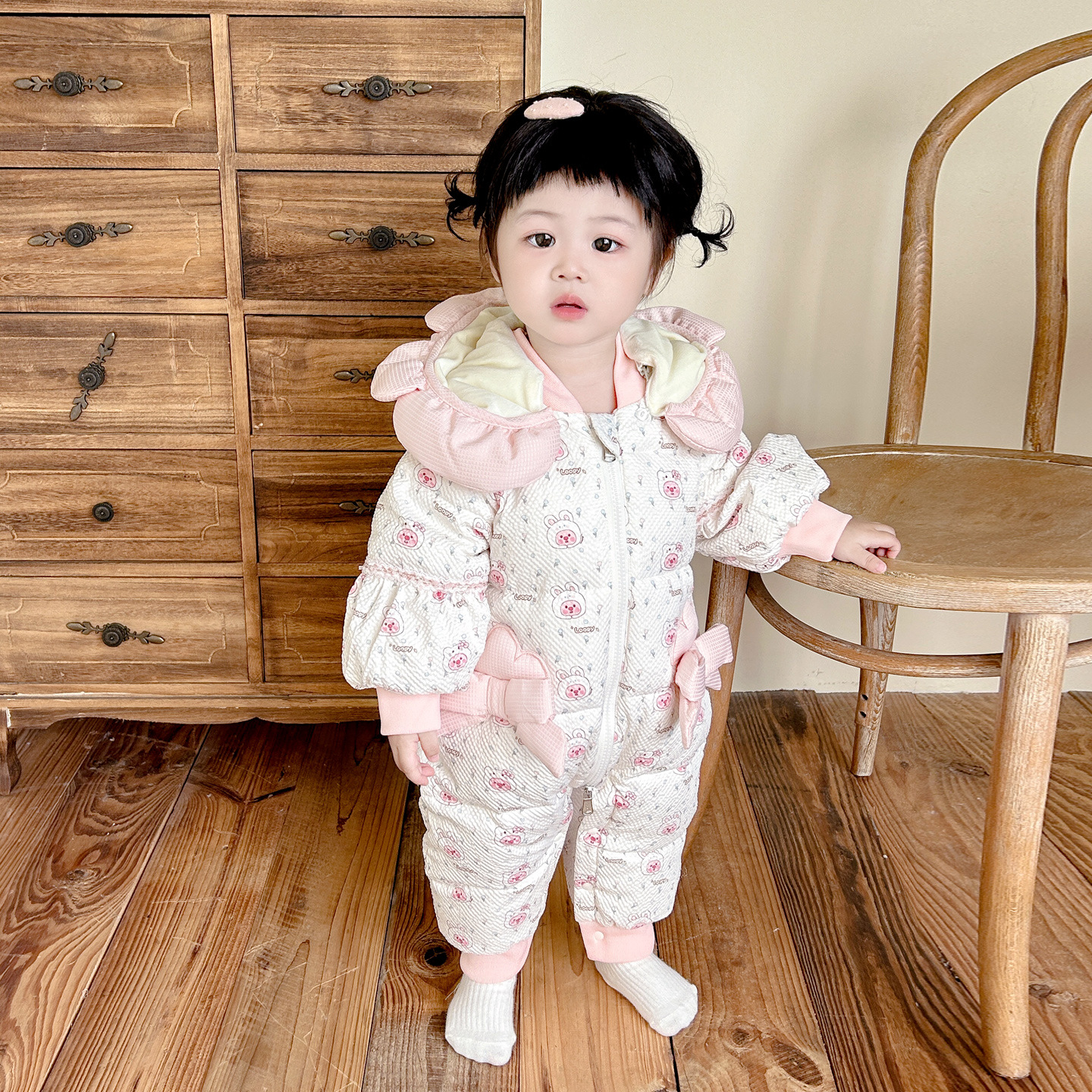 婴儿衣服冬装连体衣羽绒服白鸭绒女宝宝冬季可爱加绒加厚外出哈衣