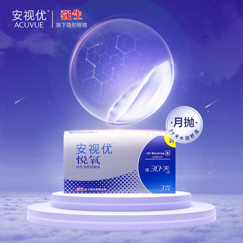 强生vita悦氧3片近视隐形眼镜硅水凝胶月抛安视优旗舰店官方正品