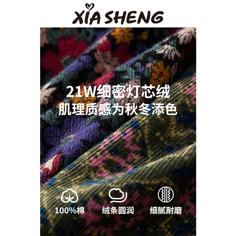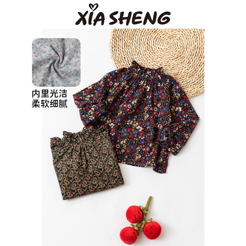 夏生复古碎花衬衫女童灯芯绒灯笼袖衬衣宝宝纯棉上衣儿童秋装新款