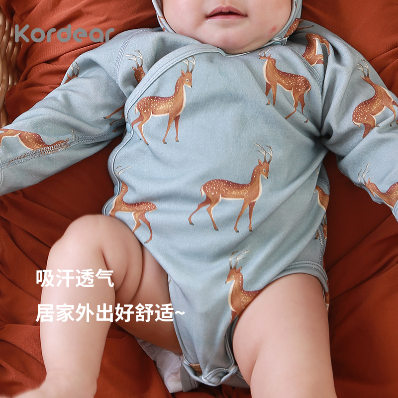 考拉蒂尔 婴儿衣服春季宝宝侧开三角连体衣印花长袖纯棉哈衣爬服