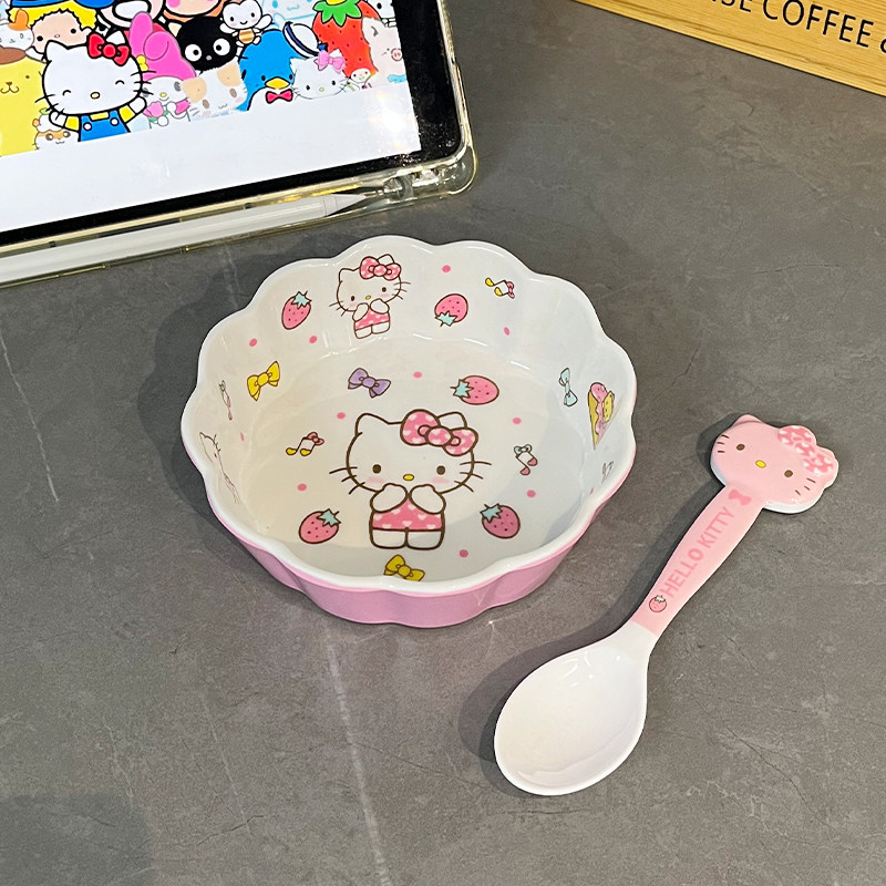 水果沙拉盘密胺花边型卡通可爱