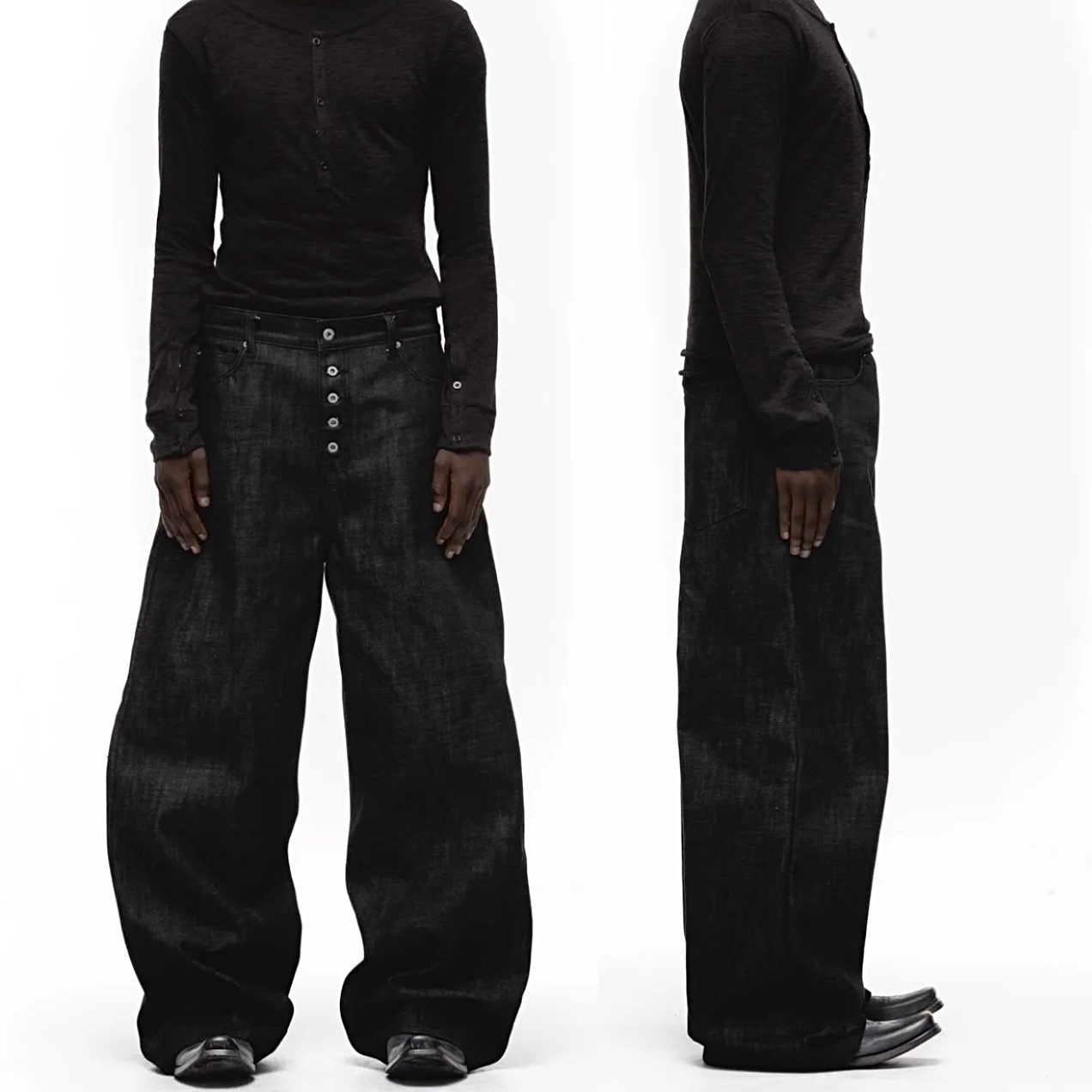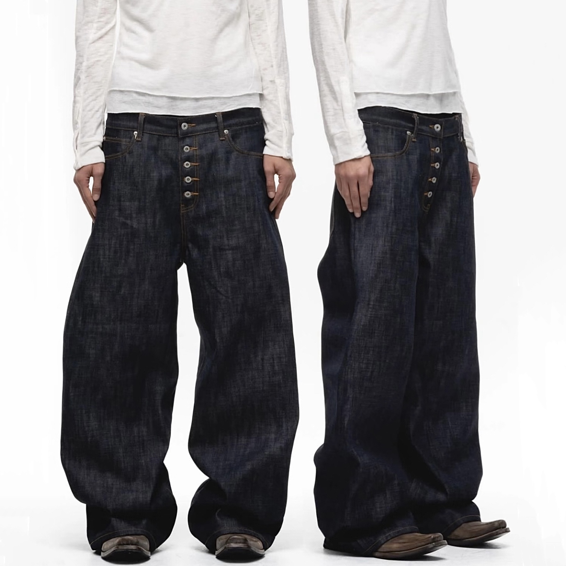 2025FW秋冬弯刀立体裁剪五连扣宽松阔腿拖地裤黑色原牛牛仔裤男潮