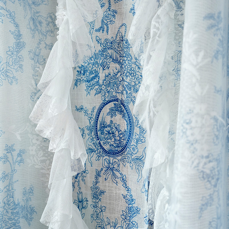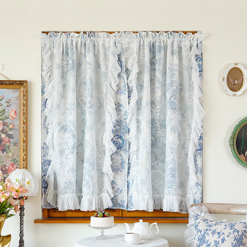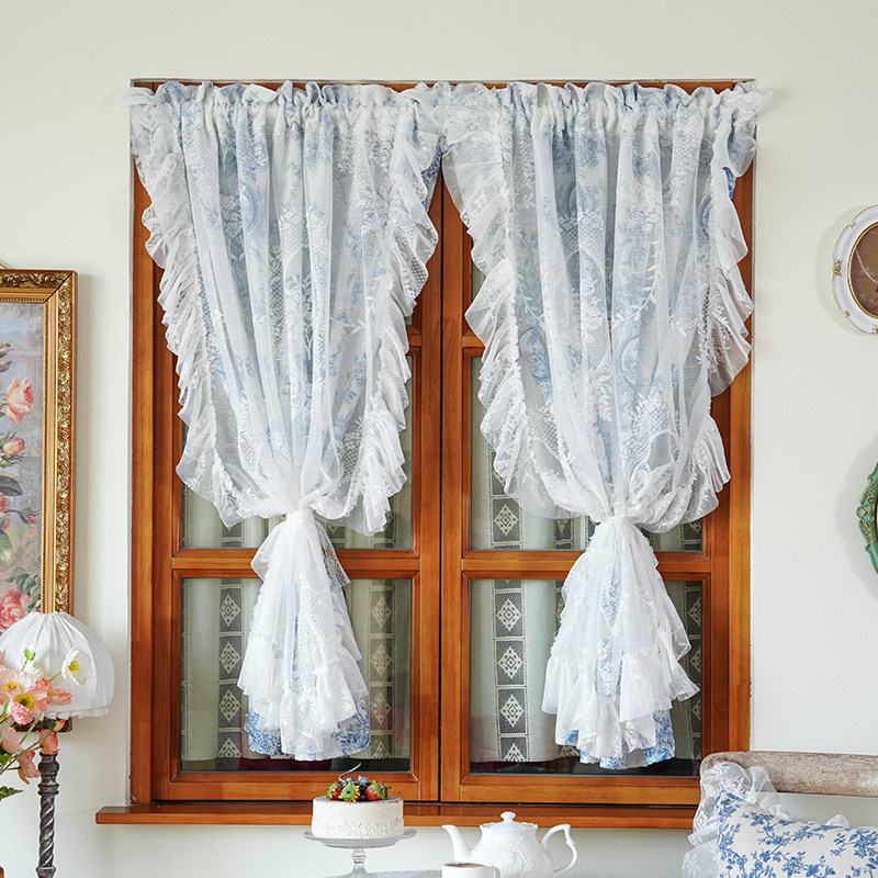 法式轻奢窗帘荷叶边梦幻飘窗蕾丝纱帘门帘隔断帘卧室免打孔装饰帘