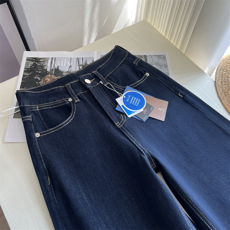 四面弹!小开叉高腰宽松显瘦糯米直筒阔腿牛仔裤巨显腿直拖地裤女