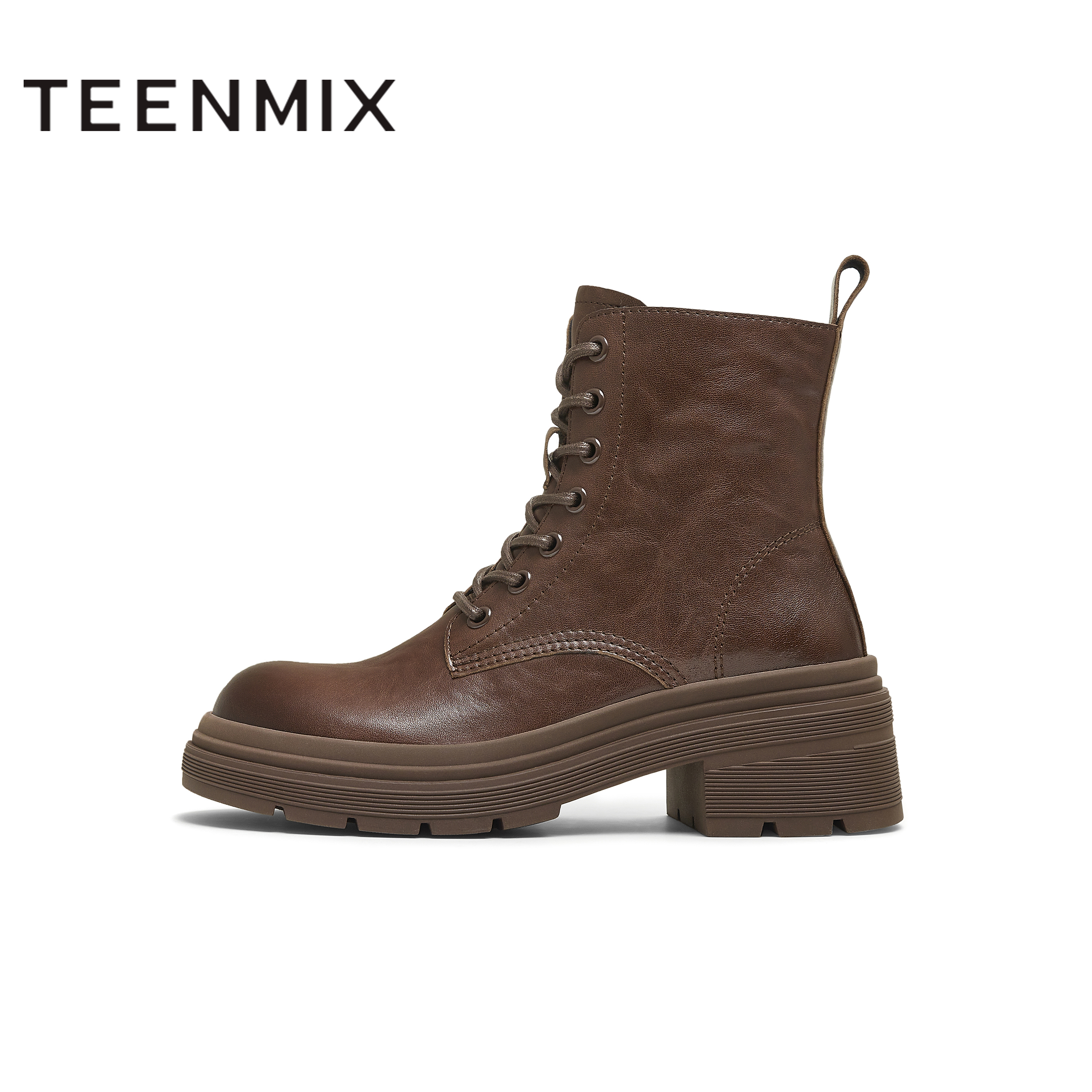 【双11预售】天美意英伦风厚底马丁靴女鞋子休闲短靴皮靴时装靴