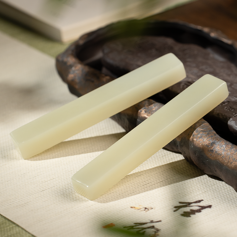 善琏湖笔 对青山 玉石镇纸国画书法专用镇尺压纸毛笔压书神器文房四宝高颜值青玉摆件精品高档礼物礼品礼盒装