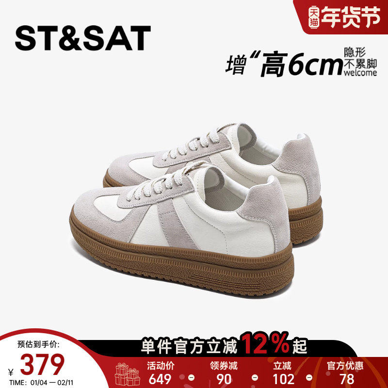 星期六隐形内增高女鞋6CM厚底德训鞋女百搭轻便休闲松糕阿甘板鞋