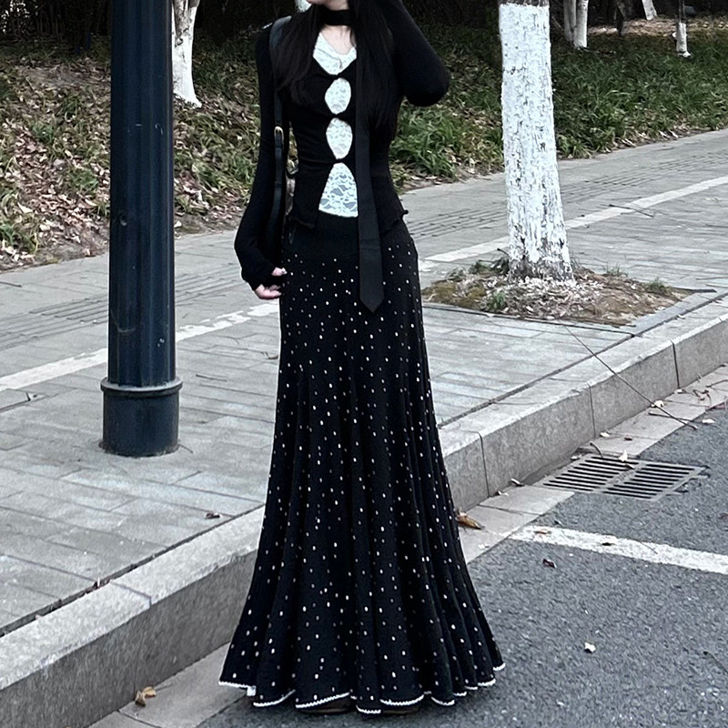 黑色波点大裙摆2026超火鱼尾裙女大码梨形伯克利裙子长款半身裙春