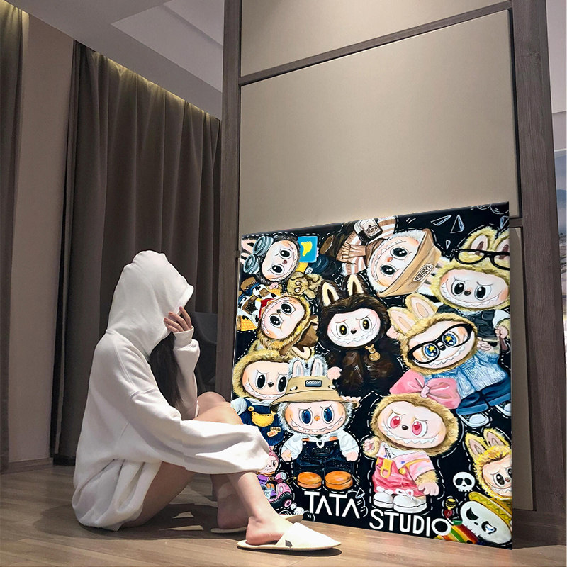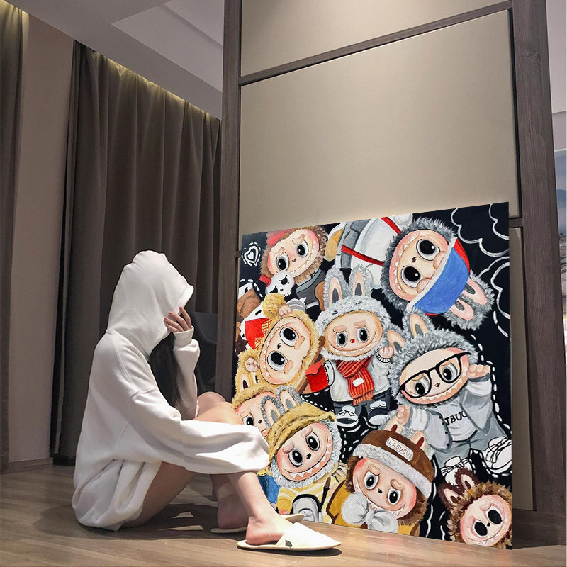 拉布布diy数字油画填充填色丙烯涂色画儿童卡通手绘手工画labubu