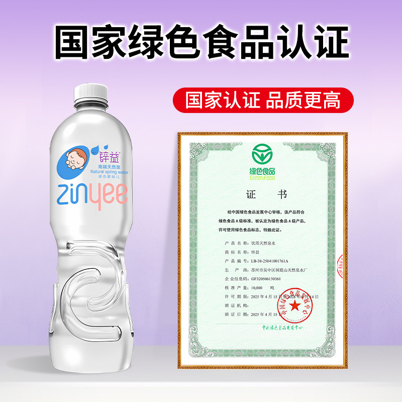 洞庭山锌益婴儿水1L*12瓶饮用天然泉水母婴幼宝宝冲泡奶粉专用瓶