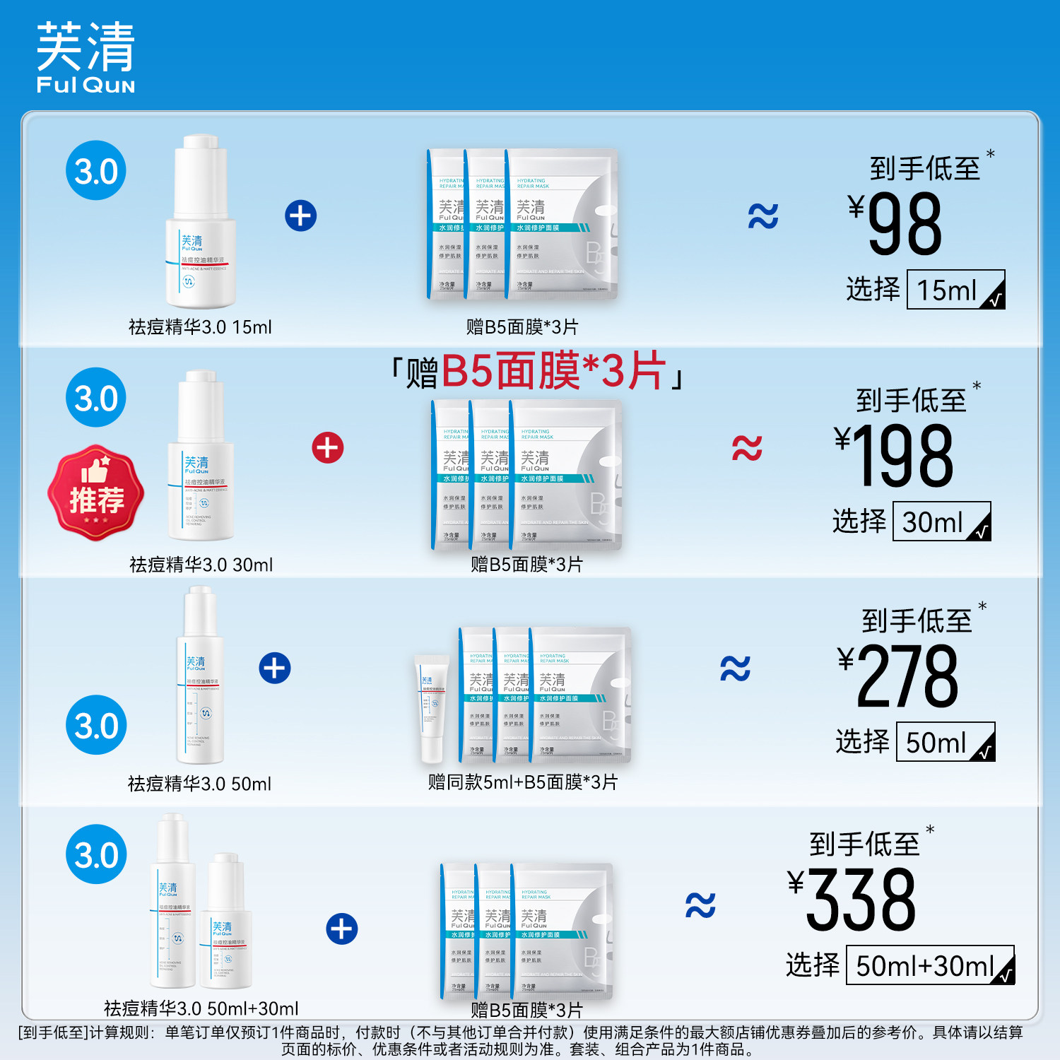 直播间芙清无酸祛痘精华液清