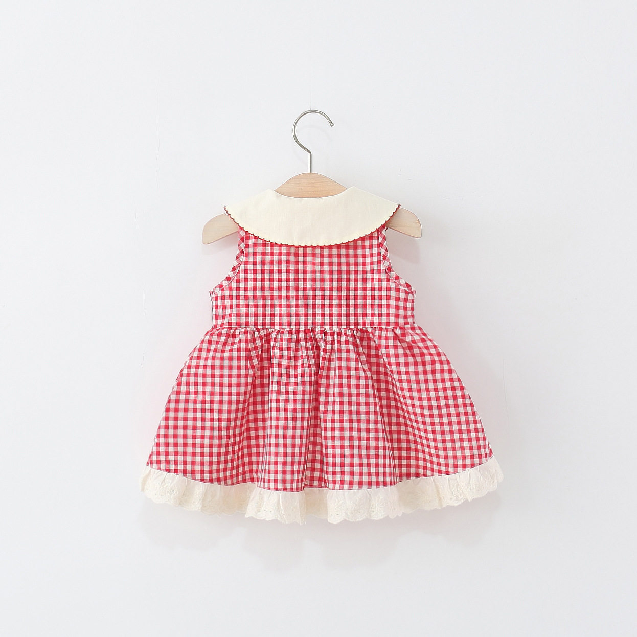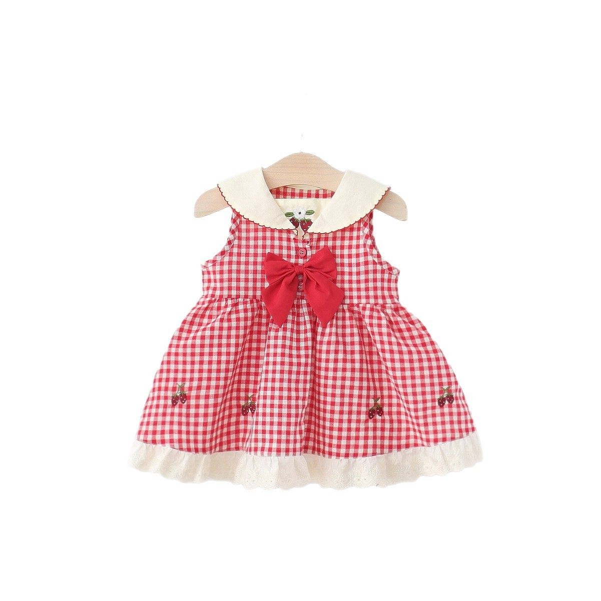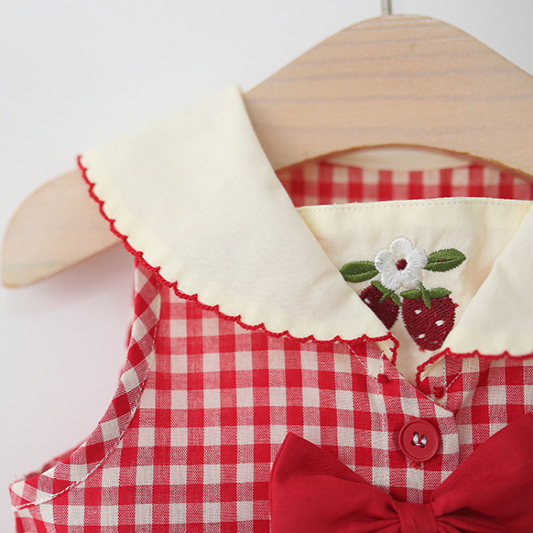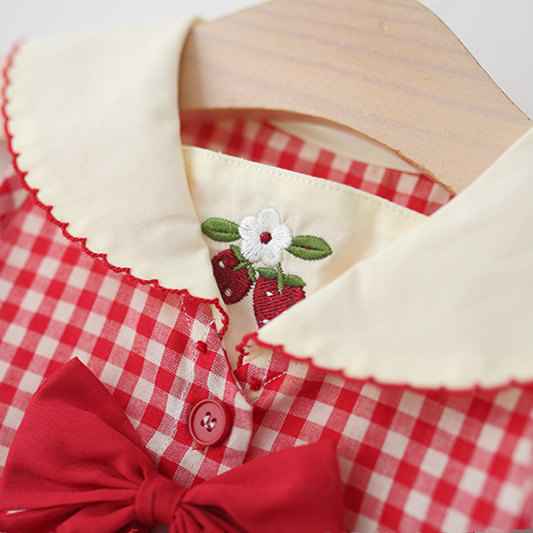 儿童小女孩格子樱桃公主裙子