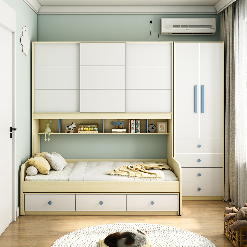 超高颜值滑门衣柜一体床