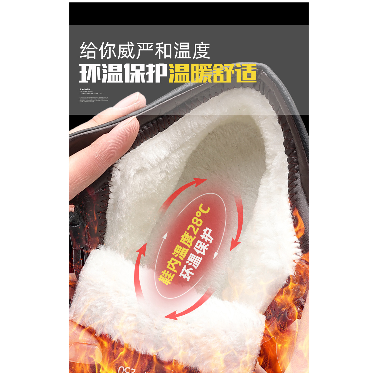 花花公子棉鞋男冬季真皮羊毛加绒加厚棉靴男高帮厚底防滑抗寒雪地