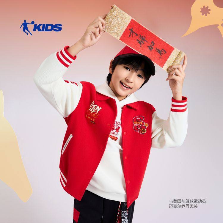 才骅加马乔丹儿童外套新年拜年服本命年红色棒球外套TDDWDA261221