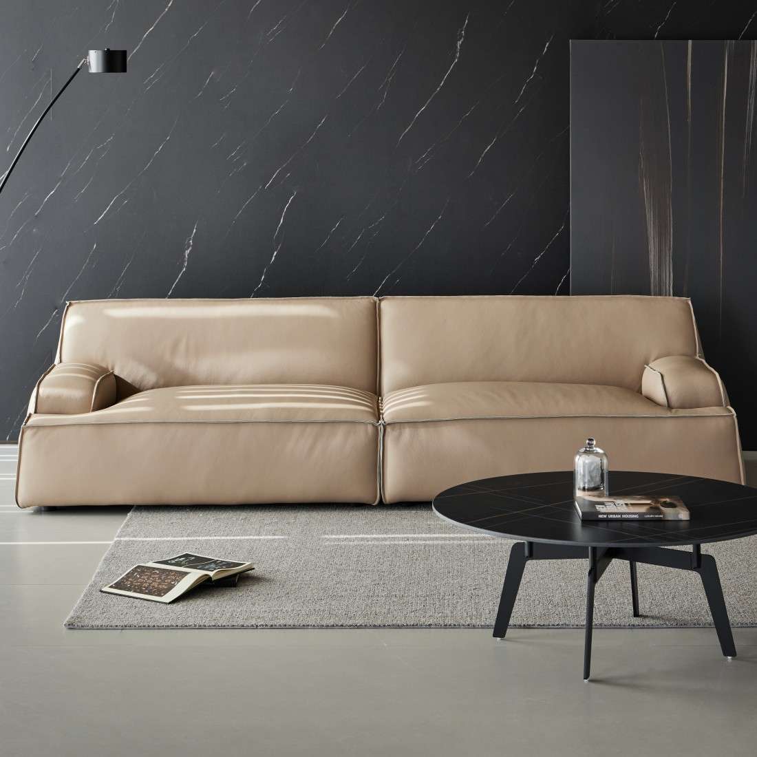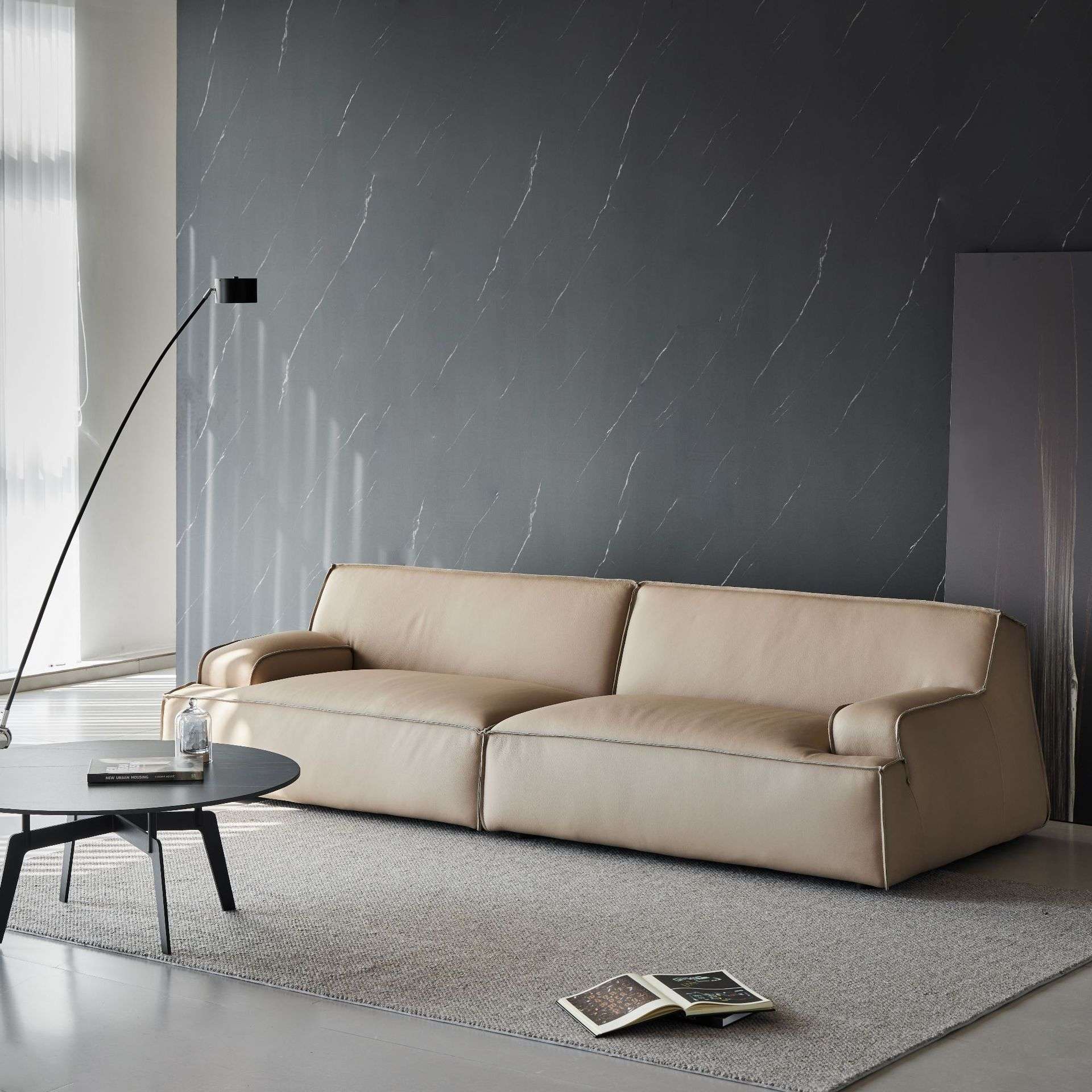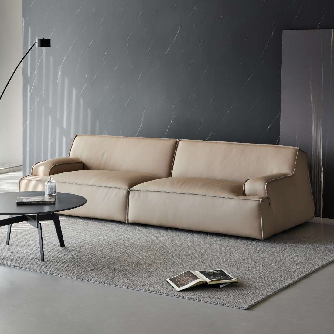 大马士革全皮奶油风设计师豆腐块磨砂布艺直排客厅家具组合沙发