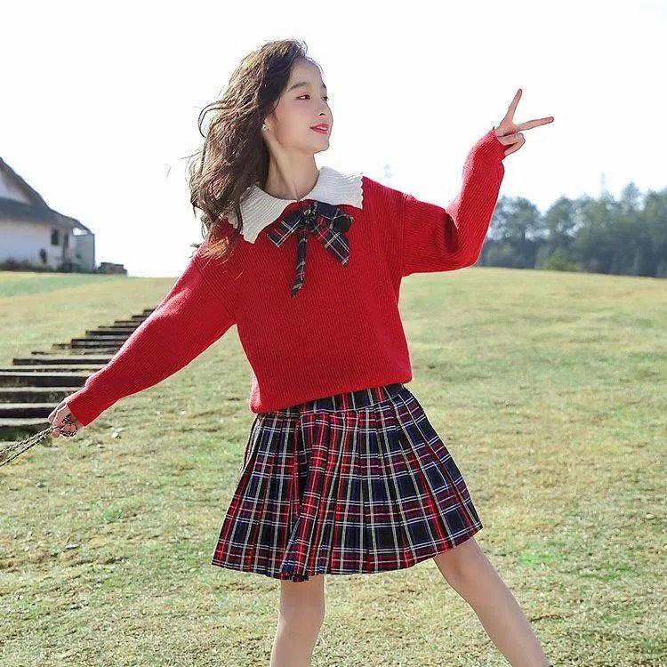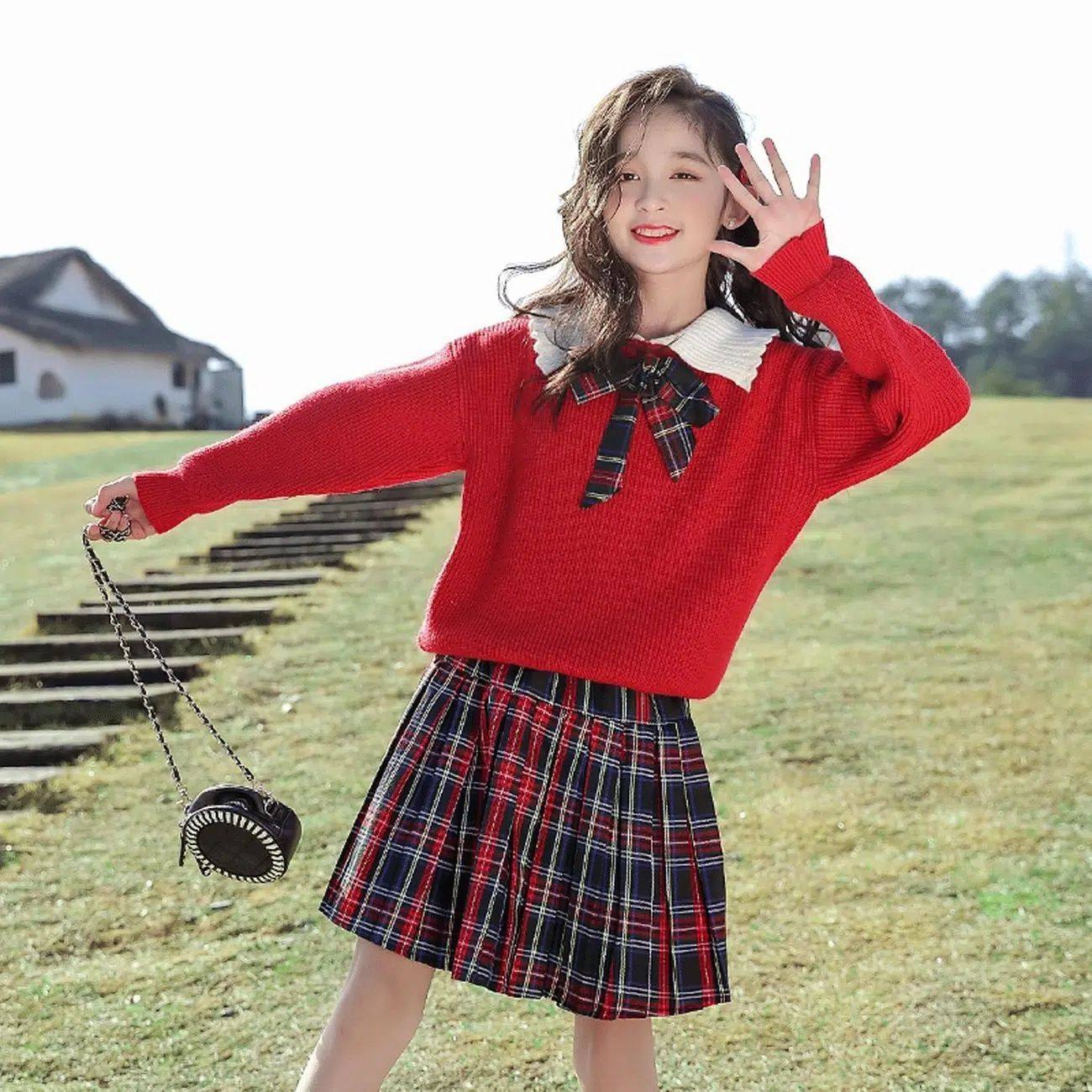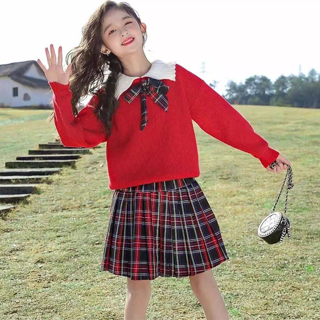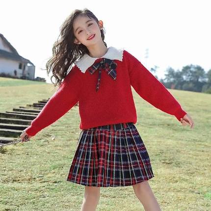 女童秋装套装冬季新款儿童针织两件套学院风毛衣短裙洋气女孩套裙