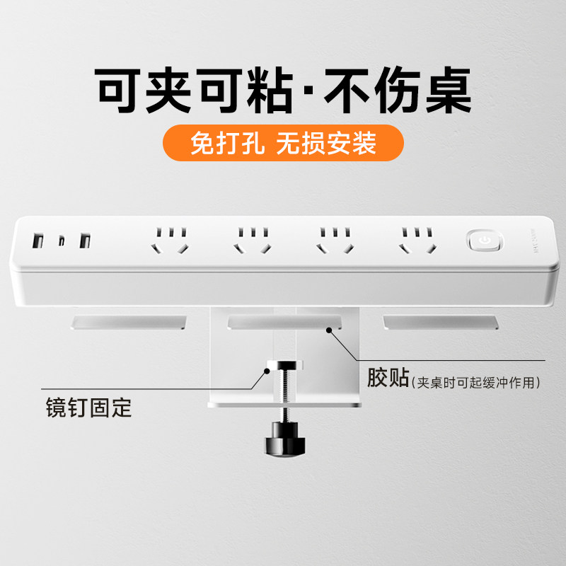 桌面插座桌夹式插排办公室多功能排插接线板带usb固定插线板电源