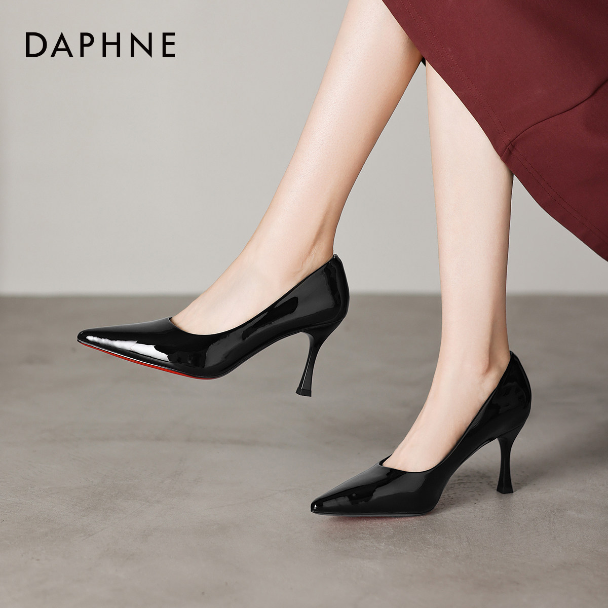 达芙妮红底高跟鞋女2026春季新款尖头单鞋女黑色皮鞋御姐职业女鞋