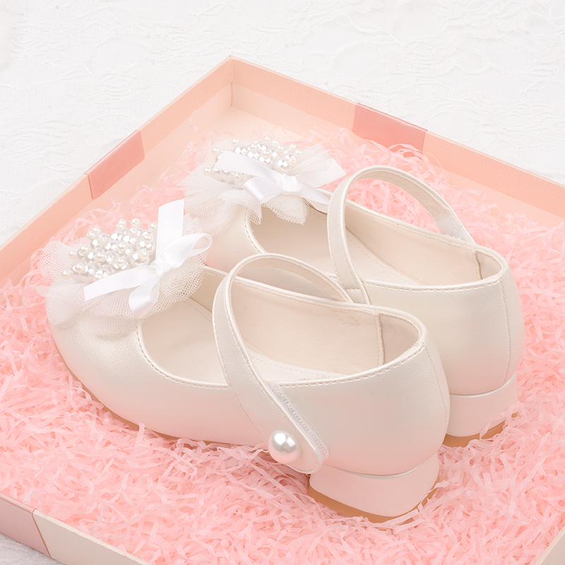 四季鞋女童珍珠蝴蝶花公主风皮鞋