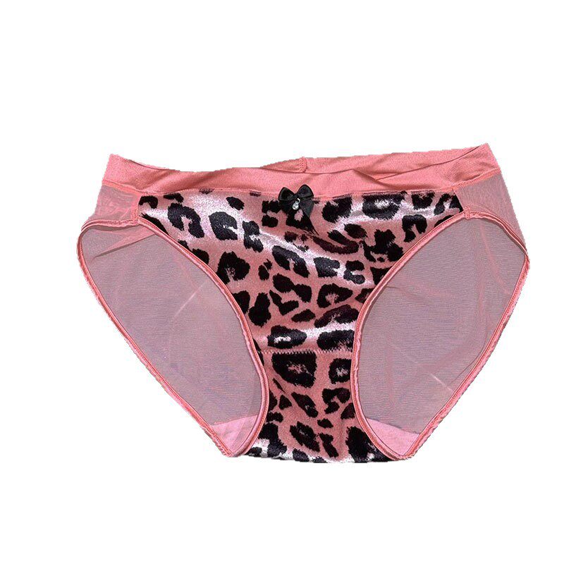 一件丝滑豹纹植绒网纱内裤女性感纯欲无痕蕾丝透明黑色低腰内裤