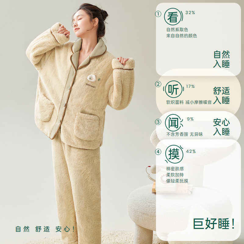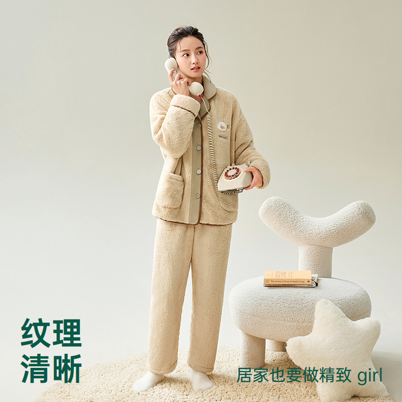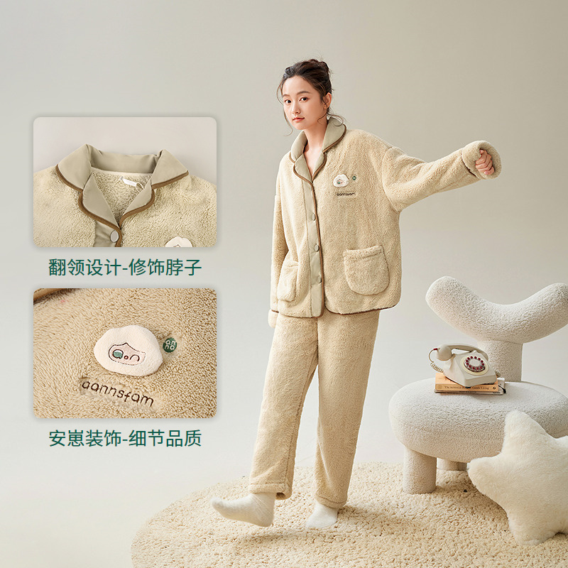安之伴【巨保暖】珊瑚绒睡衣女冬季冬款加厚法兰绒开衫家居服套装