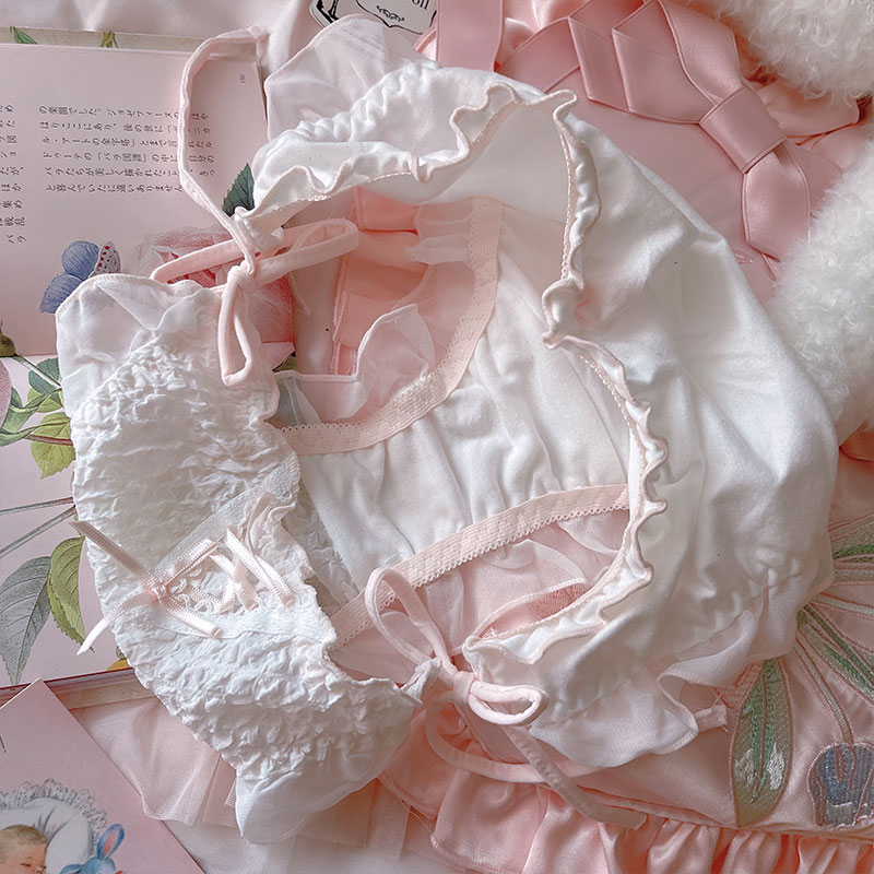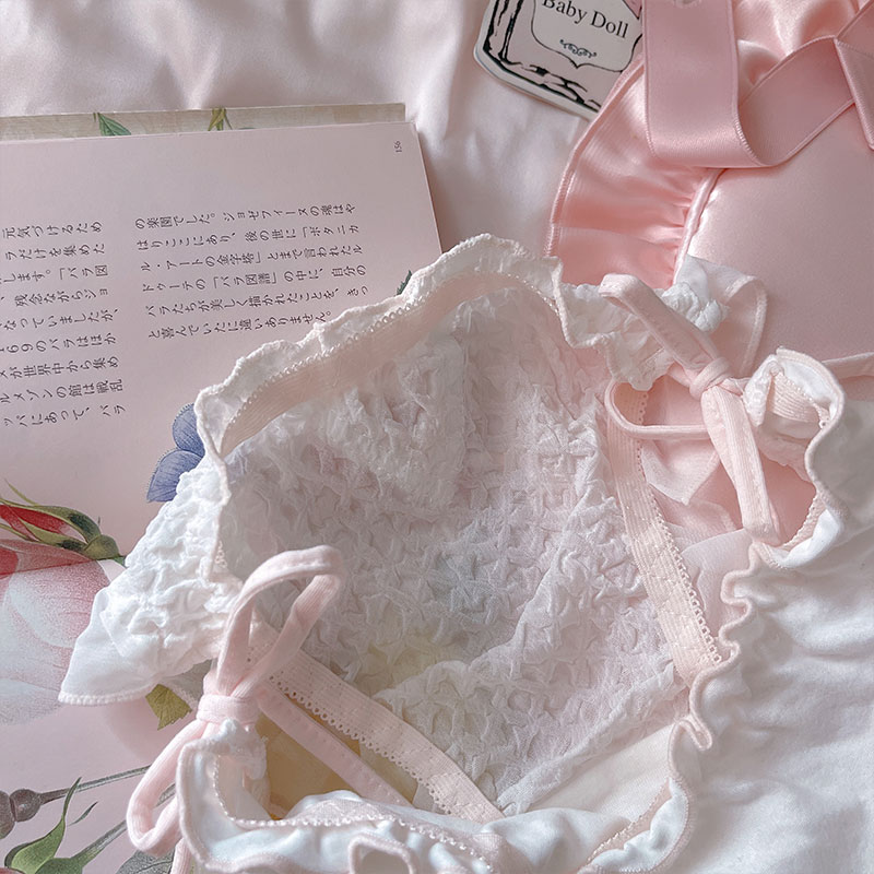 日系洛丽塔少女可爱甜美荷叶边性感纯欲系带绑带穿丝带黑白色内裤