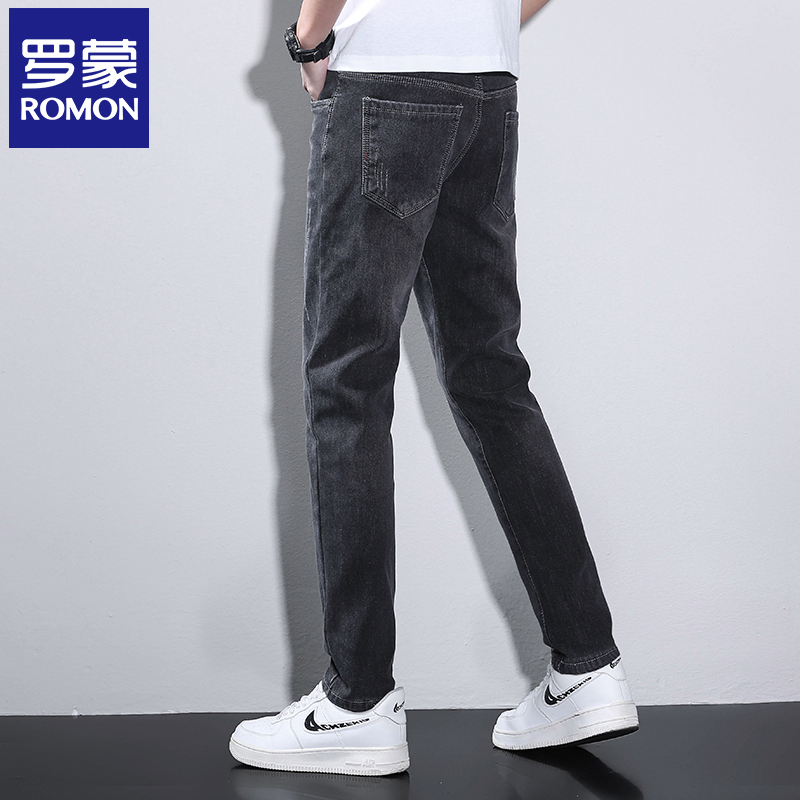 罗蒙男士牛仔裤夏季薄款黑色修身小脚直筒高端男裤潮流裤子男N3Z