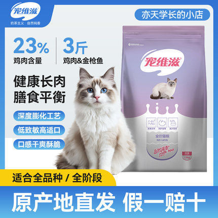 宠维滋猫粮1.5kg3斤鸡肉金枪鱼口味全阶段暹罗加菲猫田园猫通用粮