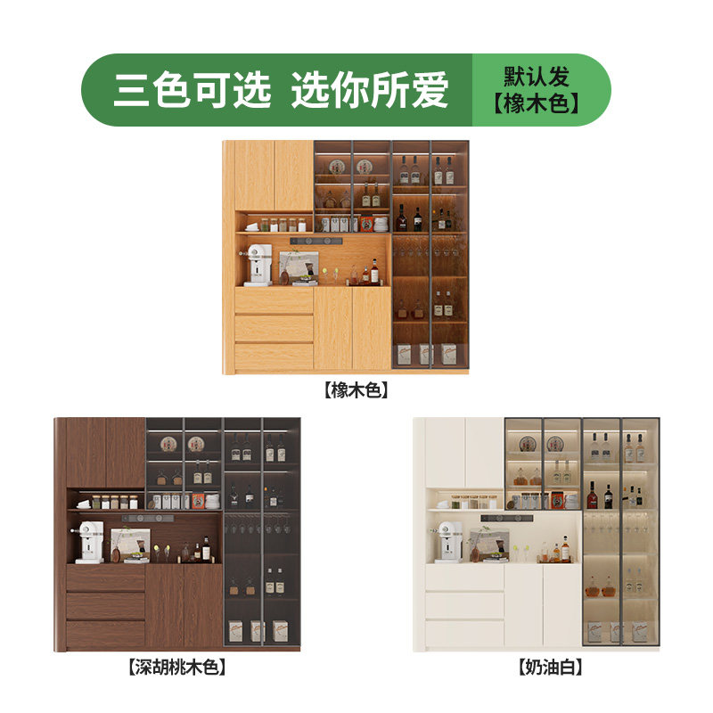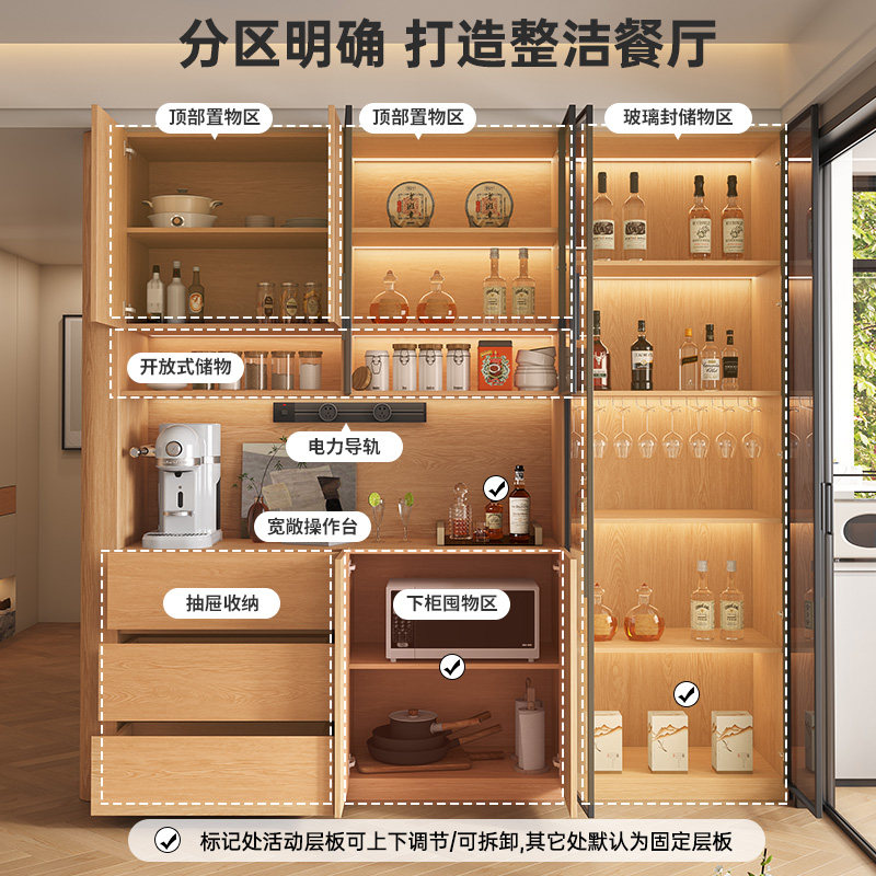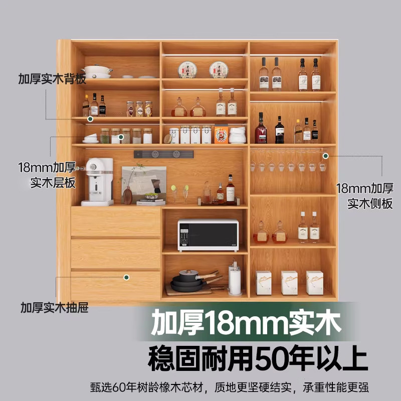 定制餐边柜实木靠墙一体高柜玻璃碗柜橡木客厅家用收纳储物橱柜
