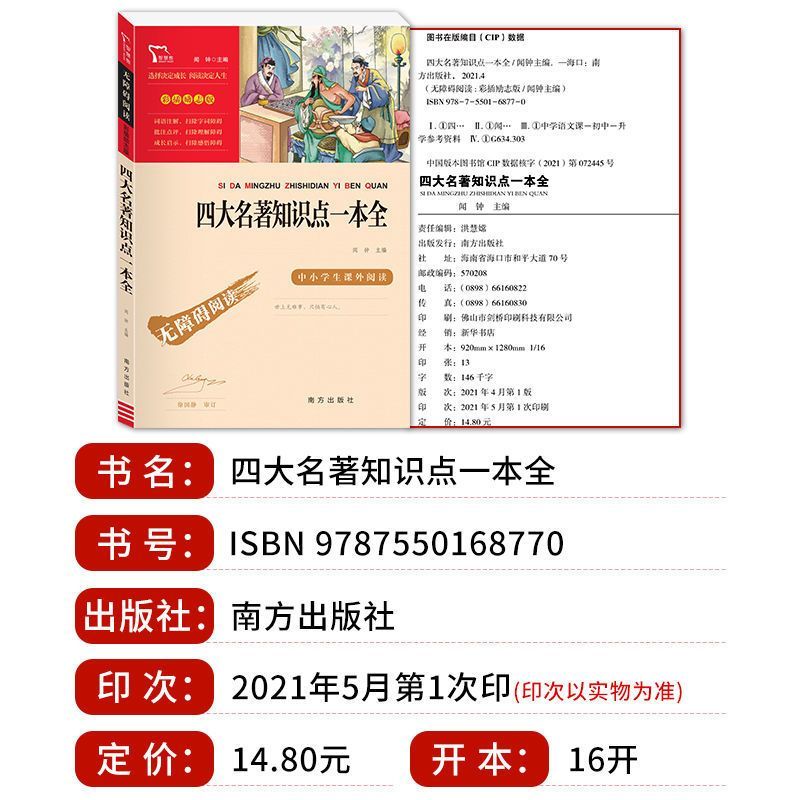 四大名著知识点一本必考全水浒传三国演义西游记红楼梦原著考点知识手册摘要四大名著小学生初中生汇总导读考点精练初中