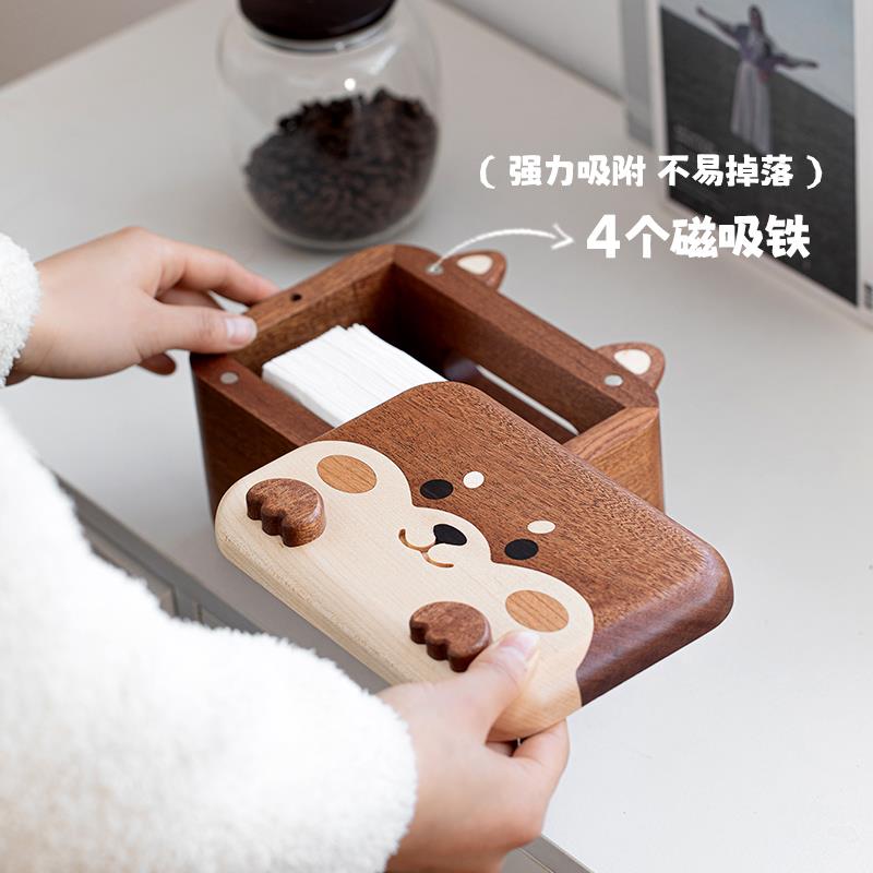 实木创意柴犬纸巾盒卡通家用客厅茶几抽取式卫生纸盒原木餐桌收纳