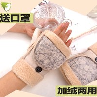 翻盖露指手套男女士冬可爱韩版卡通半指手套学生冬季保暖加绒手套