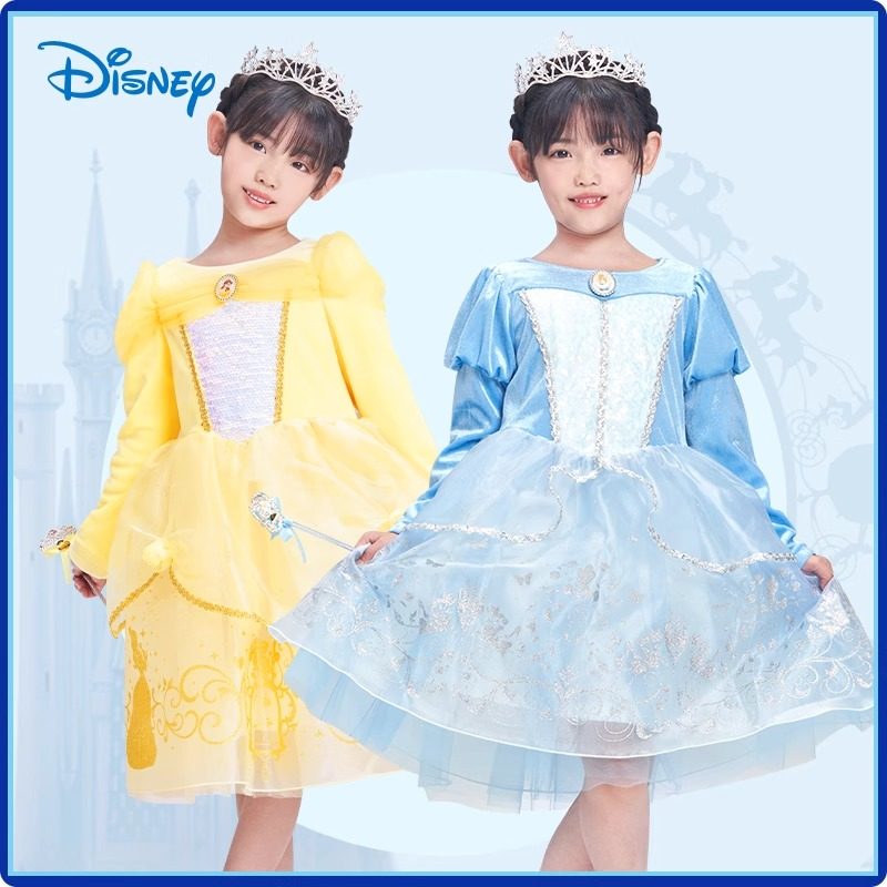 迪士尼女童加厚绒感爱莎公主裙冬新款贝儿复古丝绒连衣裙宝宝洋气
