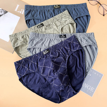 男士内裤男三角裤纯棉宽松裤头100%全棉中腰大码短裤头透气 4条装