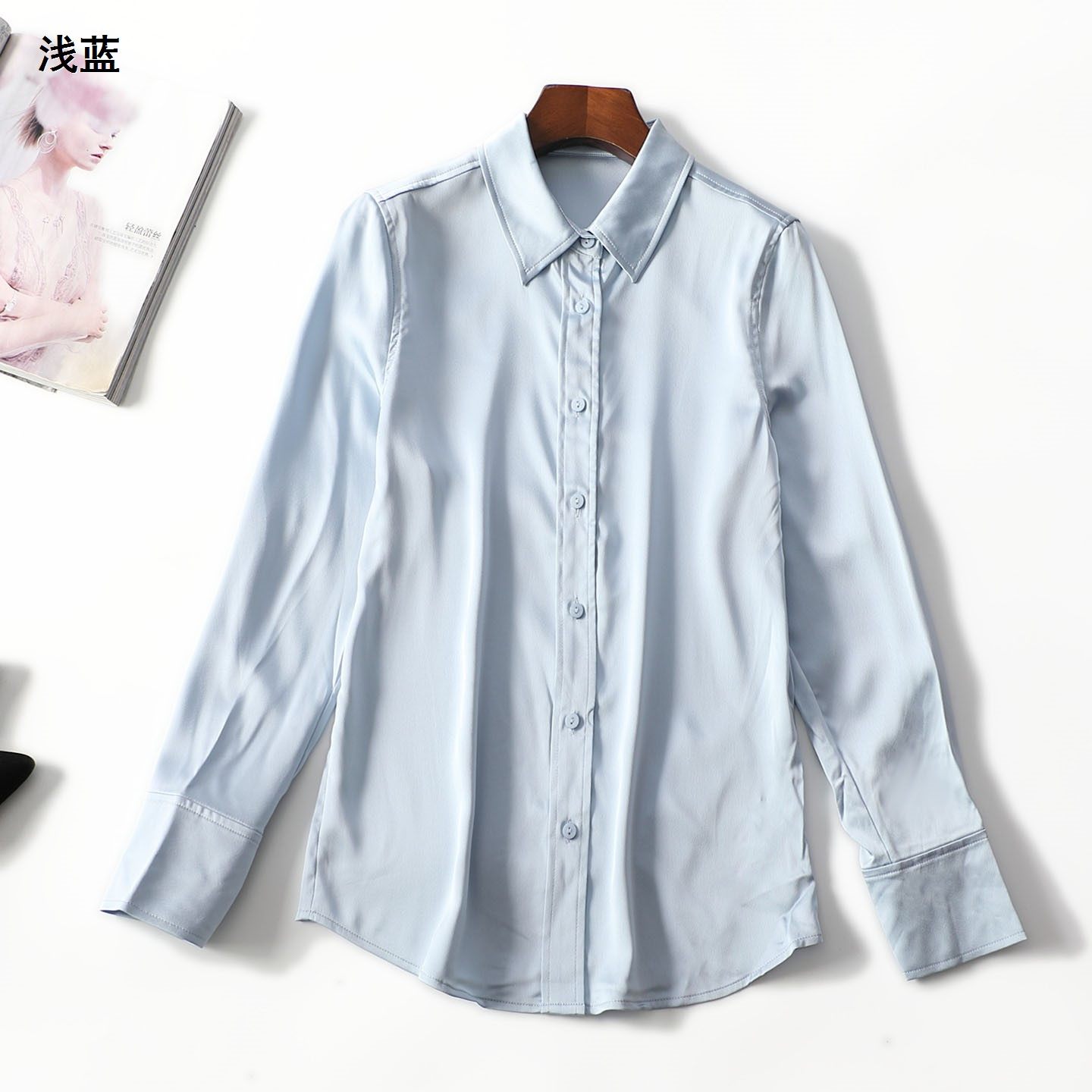 248052超值洋气女人味法式气质百搭精品女装缎面高级感春长袖衬衫