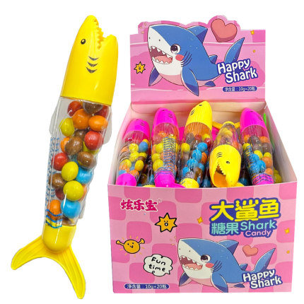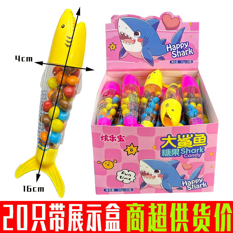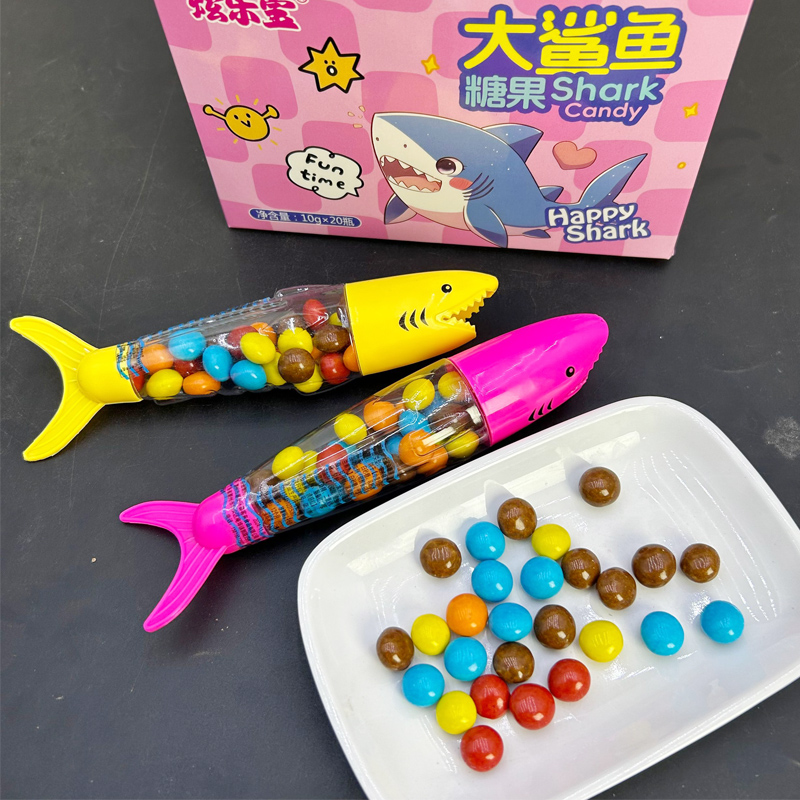 儿童创意卡通大鲨鱼造型彩色巧克力味糖果豆奖励小孩趣味零食批发